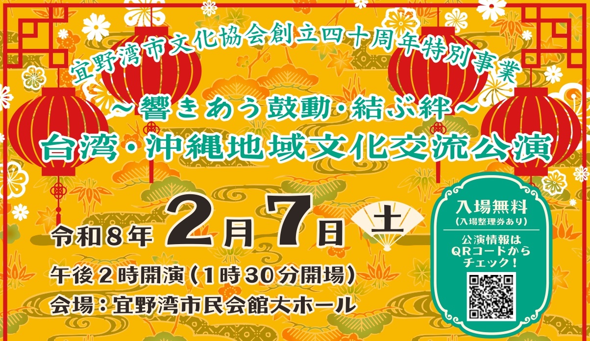 台湾・沖縄地域文化交流公演』 令和8年2月7日(土曜日)14時開演(13時30分開場)宜野湾市民会館大ホール