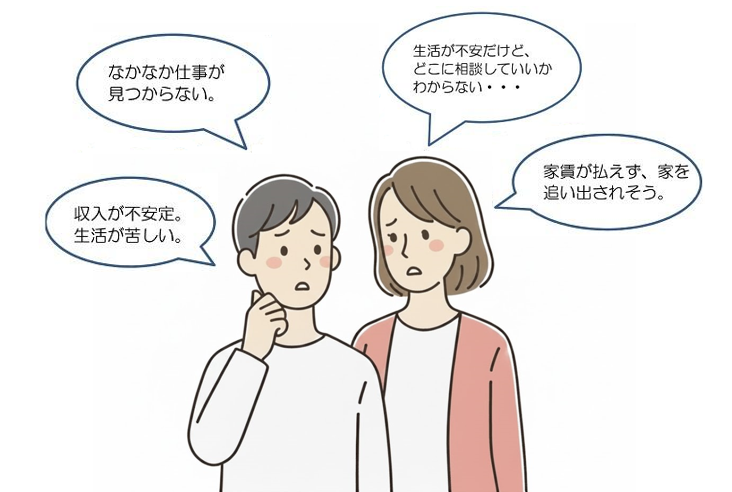経済的な問題などで生活に不安がある人に対し、本人の意向等を踏まえた支援プランを作成し、就労支援や各種制度の活用など、必要なサービスの提供を包括的に行います。