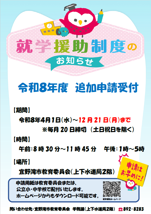 令和8年度 就学援助追加申請受付について