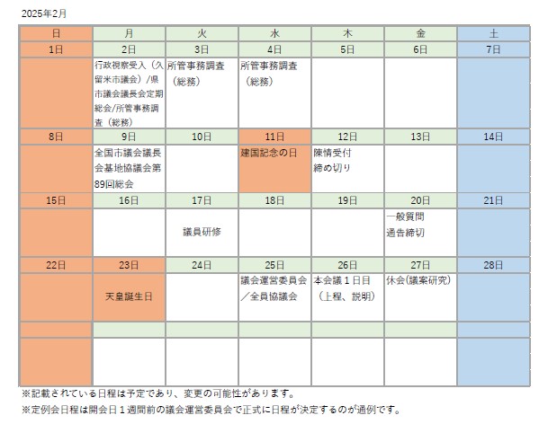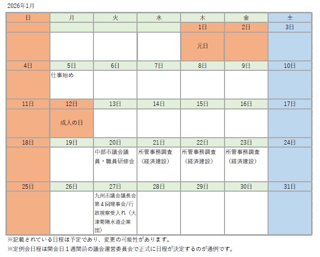宜野湾市議会カレンダー (令和7年12月25日 時点)