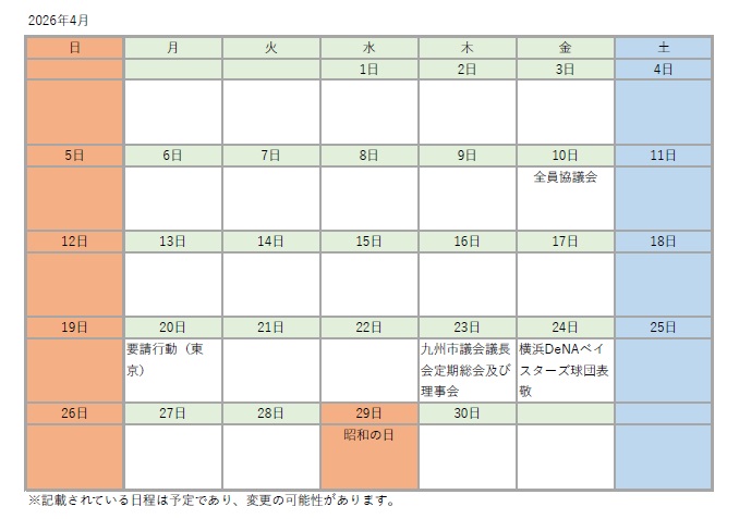 宜野湾市議会カレンダーを更新しました。