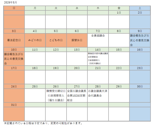 宜野湾市議会カレンダー (令和8年3月27日 時点)