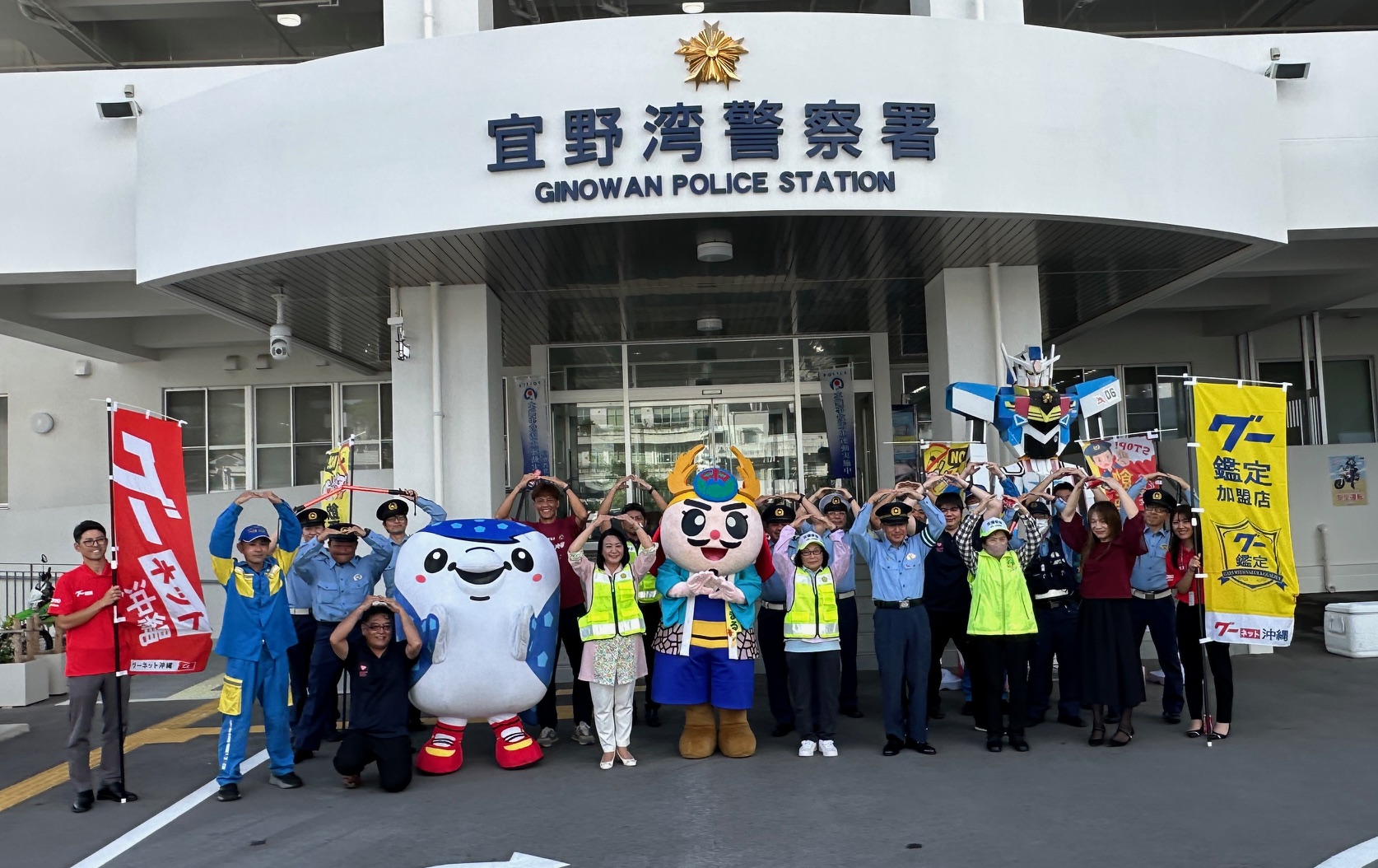 秋の全国交通安全運動の一環として9月26日に宜野湾警察署及び宜野湾地区交通安全協会主催による交通安全啓発「アイキャッチ作戦」が宜野湾警察署前で実施されました。