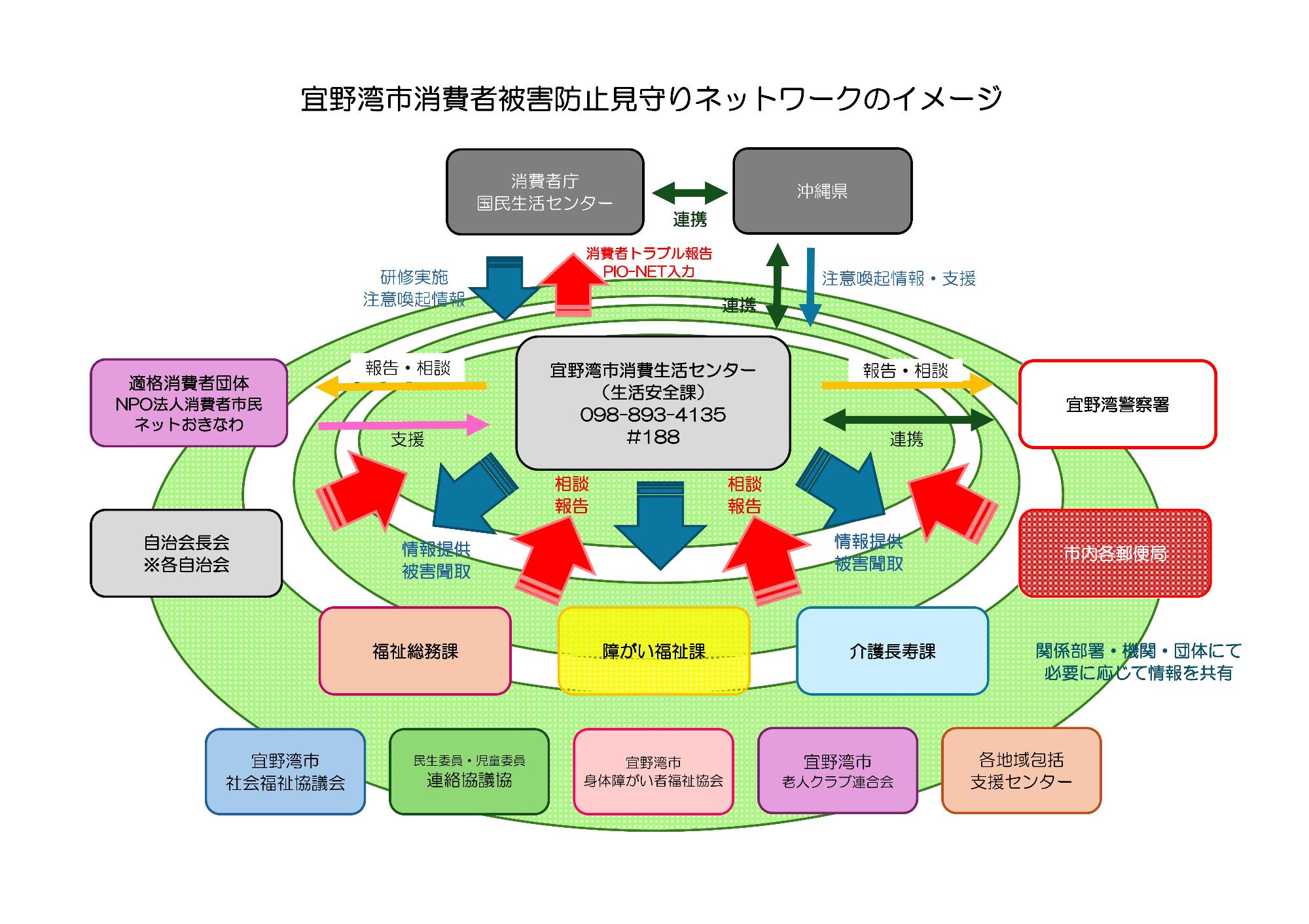 消費者安全確保地域協議会(見守りネットワーク)は、組織されるすべての関係機関等を招集するような会議を運営するのではなく、各々の日々の取組の中で発見した消費者被害の情報を、組織される機関機関等の中の必要最小限の担当者のみで共有し、対策を検討、解決に向けた取組を行うものです。