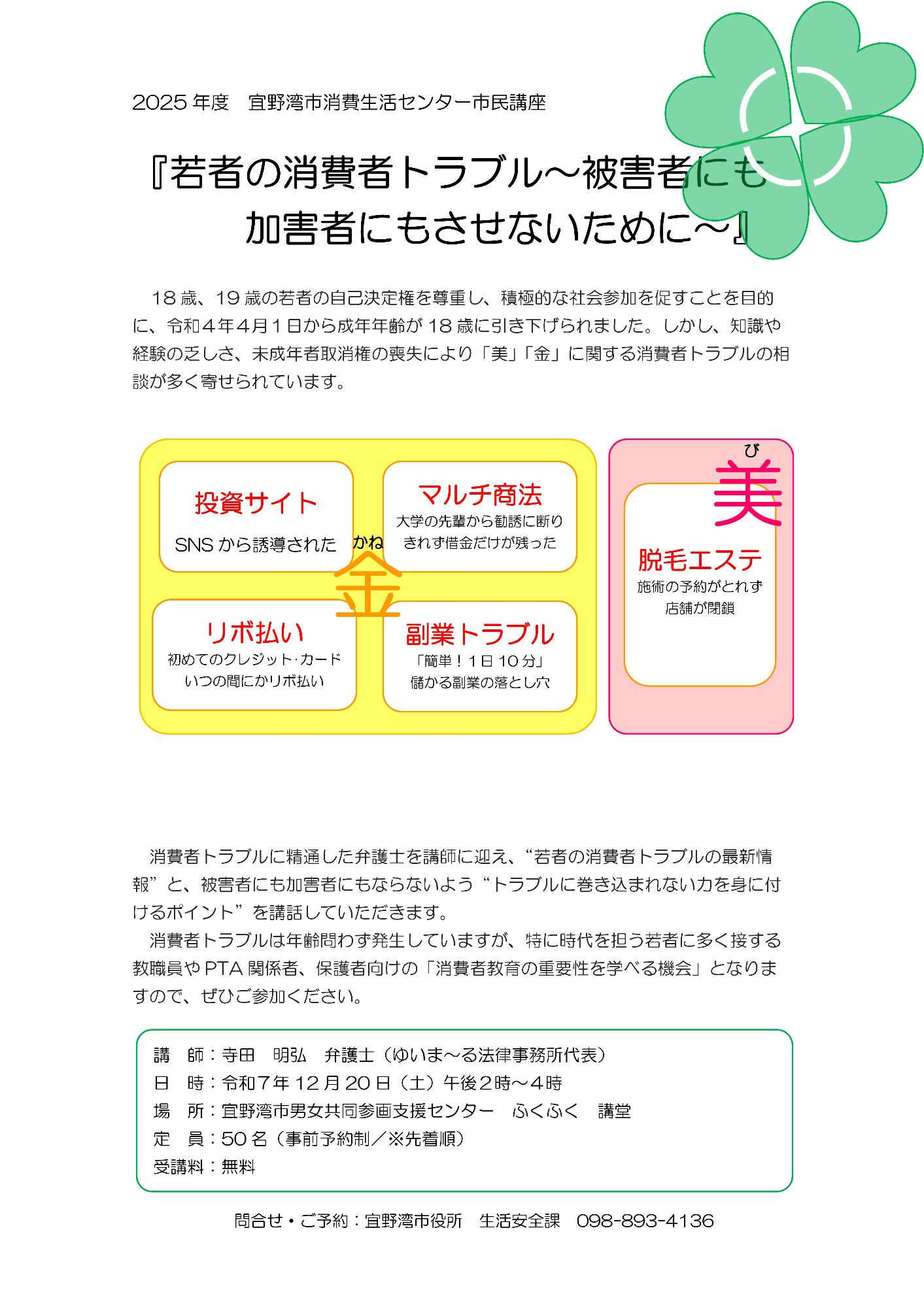 宜野湾市消費生活センター 市民講座開催のお知らせ