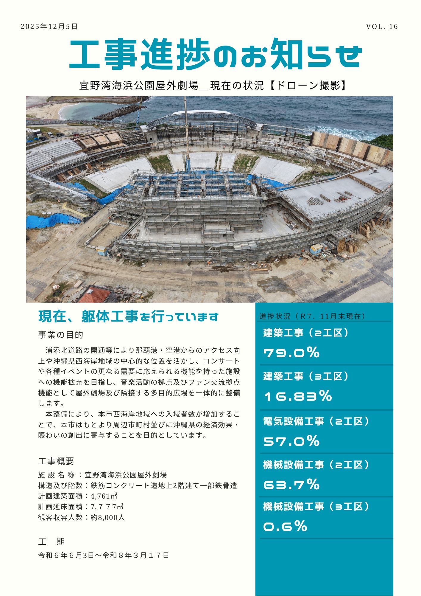 宜野湾海浜公園屋外劇場工事進捗のお知らせ(11月末)