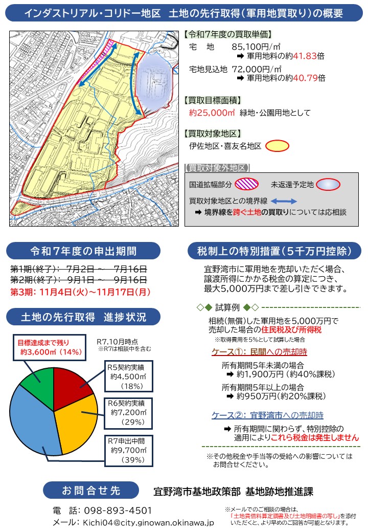 インダストリアル・コリドー地区における土地の先行取得(軍用地買取り)について