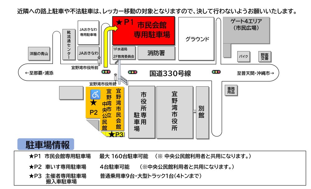 宜野湾市民会館専用駐車場の台数制限についてお知らせ