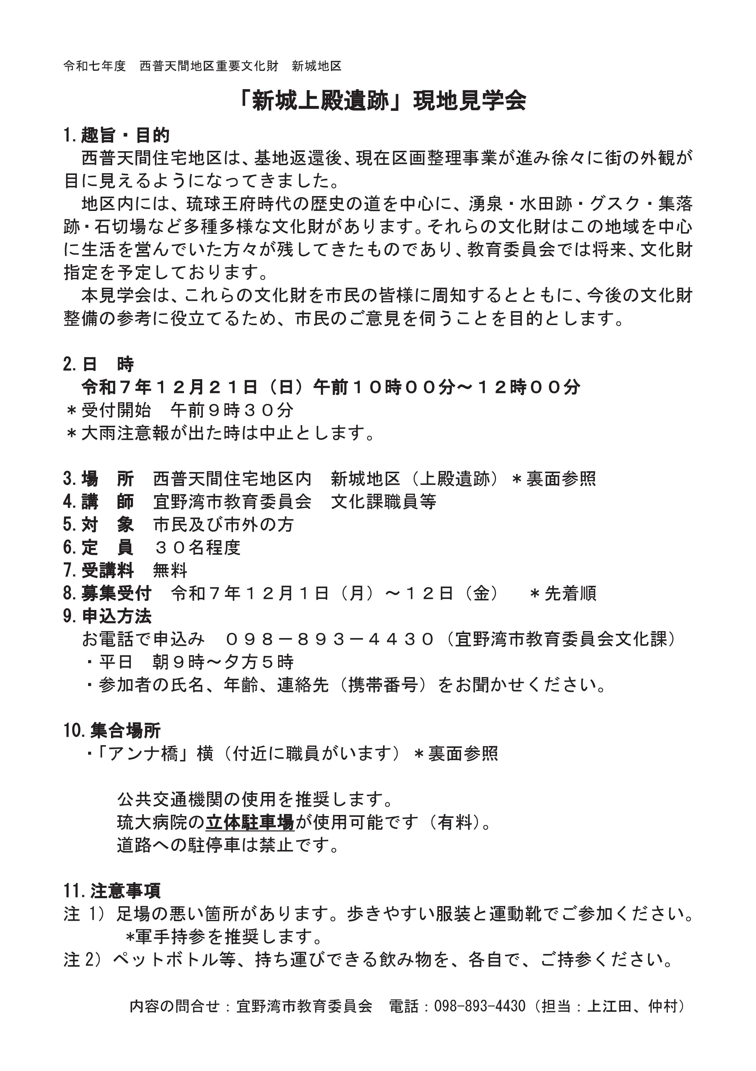 帽子、飲み物、歩きやすい靴でご参加ください。 |