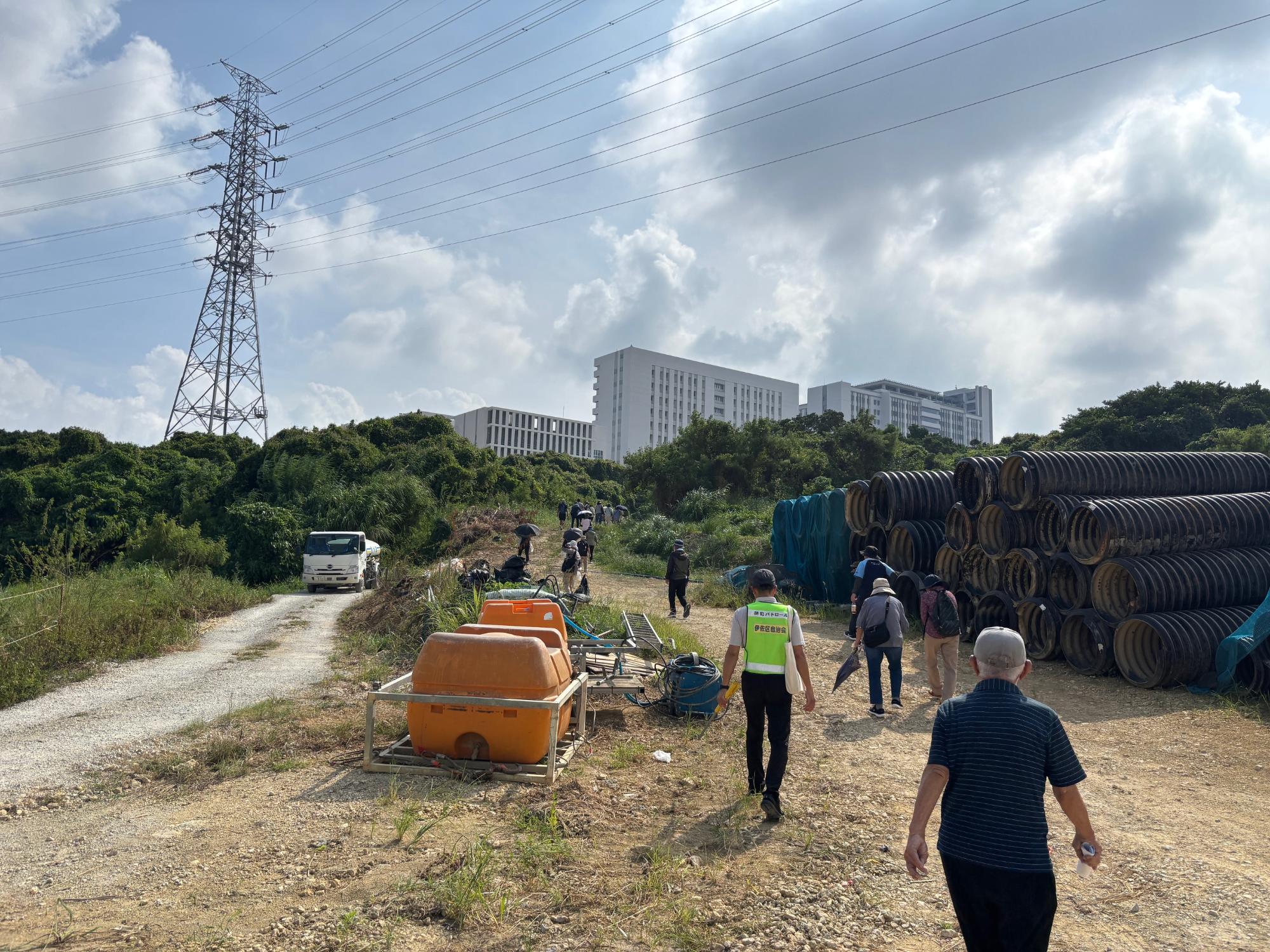 と、そんな酷暑の中、来週土曜日開催の第三回イガルー・シマ文化財教室「伊佐まち歩き第二弾!」に向けて、当日見学を予定している西普天間住宅地区内の「豊之泉」周辺を清掃してきました😁