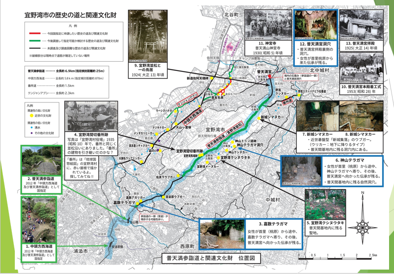 しかし、その僅かに残る道跡からでも当時の様子を浮かび上がらせることはできる。道沿いには未だ多くの関連文化財が残っている! 参詣道の再現イメージを図り、その道が当時どのような役割を果たしていたのか、普天満参詣とは一体何を意図していたのかなどなどを紐解き、宜野湾の歴史を考えてみよう的な講座内容となっているのです😁