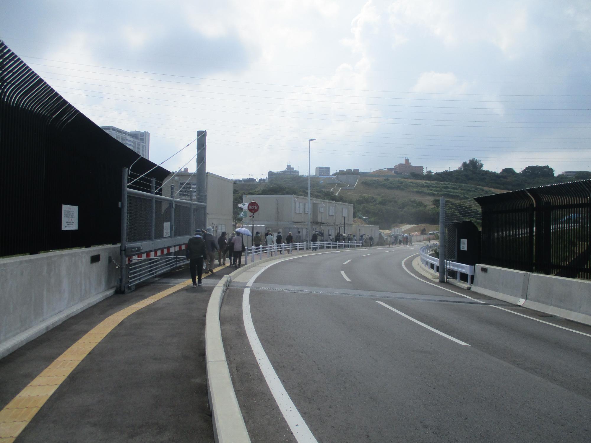 米軍基地を横目に、開通したばかりの「市道23号・いさばーま橋」を歩き🚶