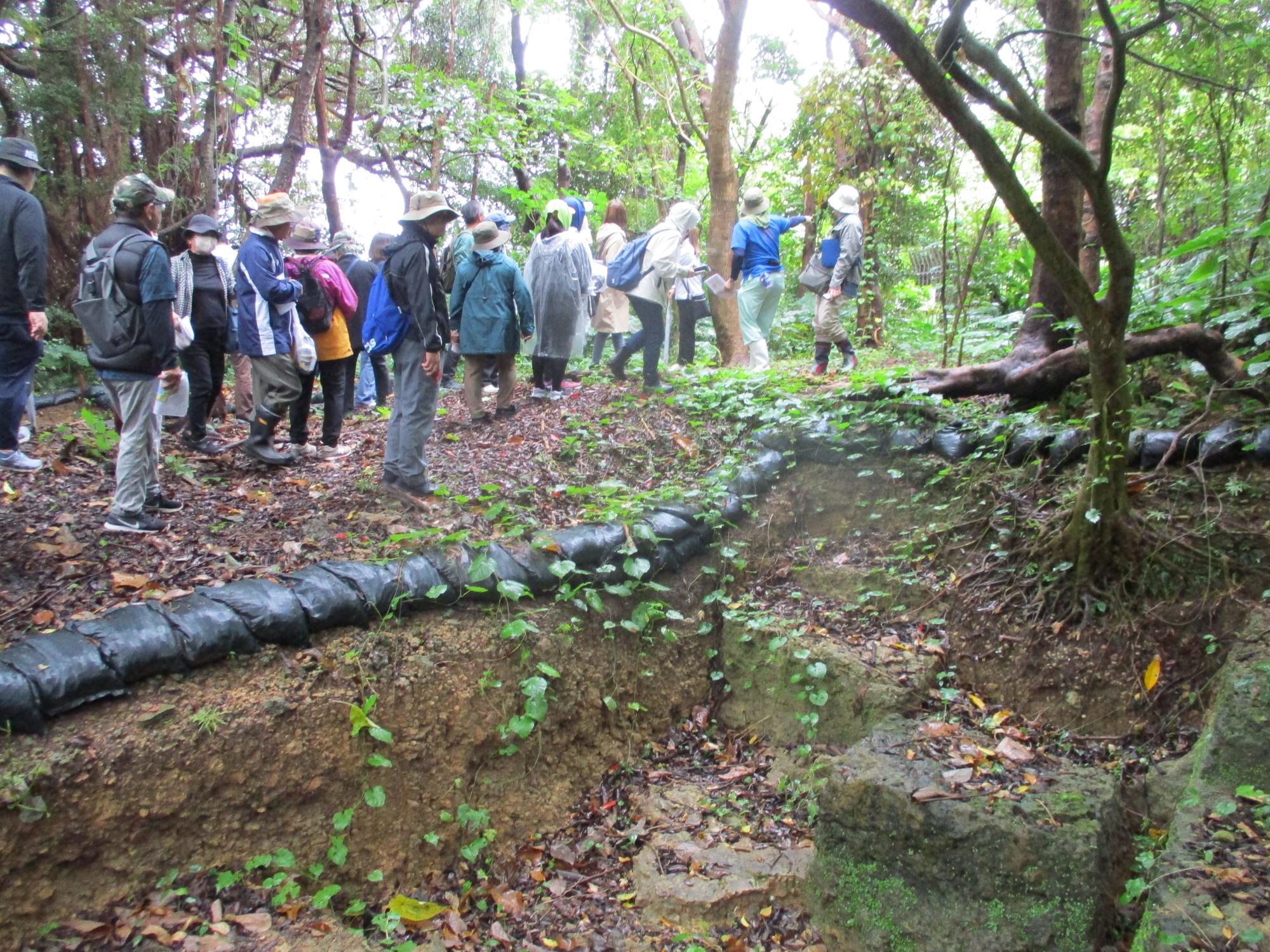 今回の見学地は足場がとてもいいとは言えない場所で、斜面があったり、ちょっとした沢を渡ったり、土曜開催なら確実に中止になっていたと思います😅
