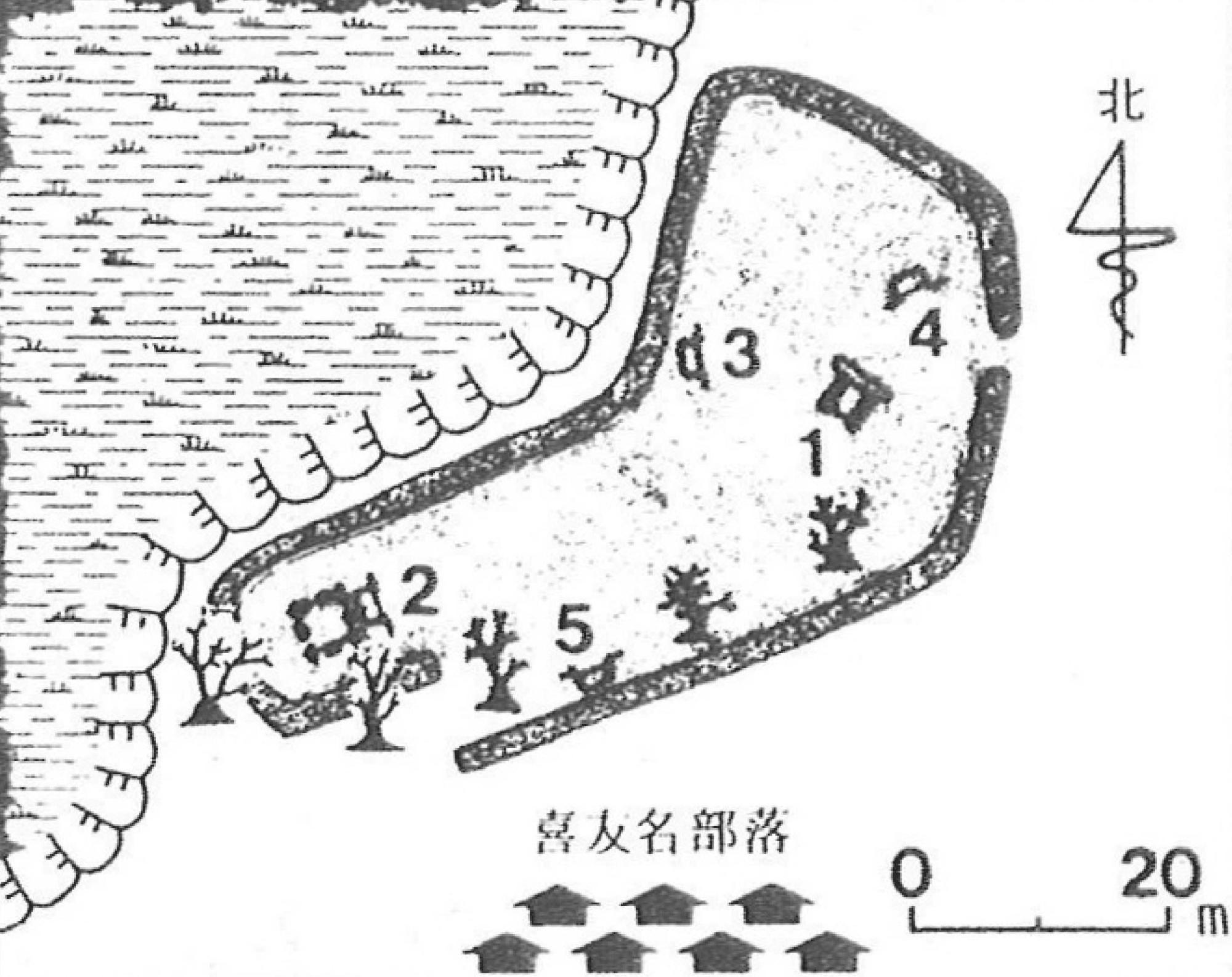 聞き取り調査によるイメージ図がこのような感じとなります。図内の数字は拝所(香炉)があったであろう場所と考えられるようです。