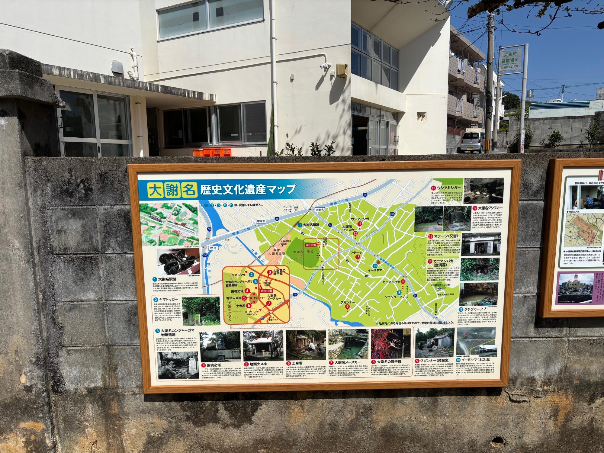 たとえば、大謝名の公民館敷地内には大謝名に点在する文化財の案内マップを🗺️