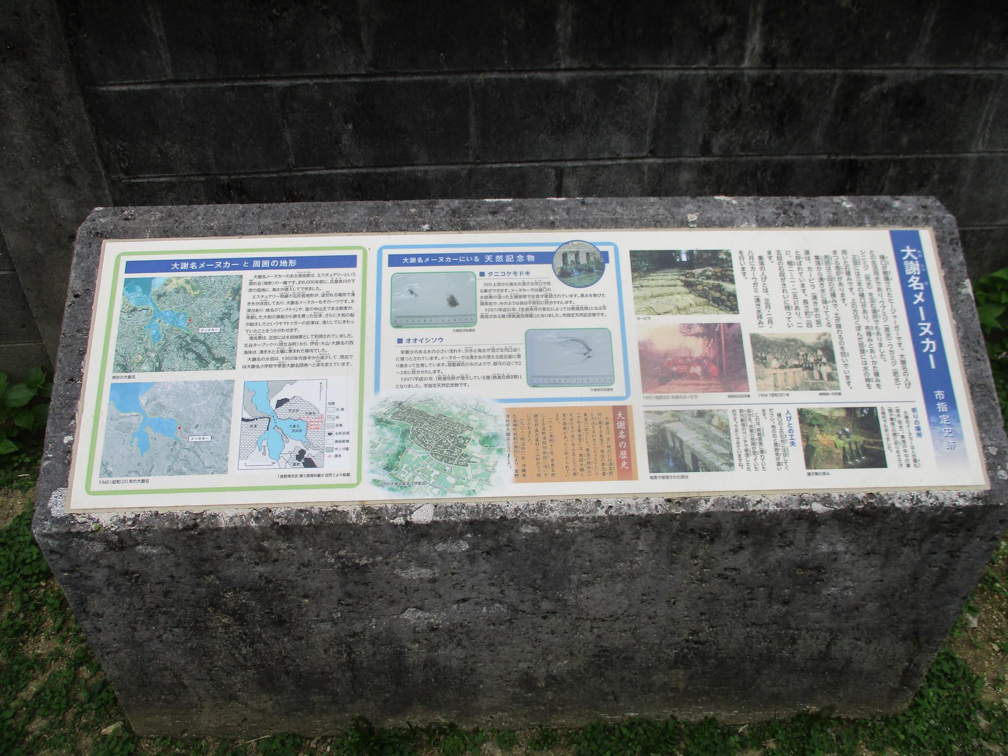さらに、実際に大謝名メーヌカーに足を運ぶと、大謝名メーヌカーに関するより詳しい説明板が設置されています🫡