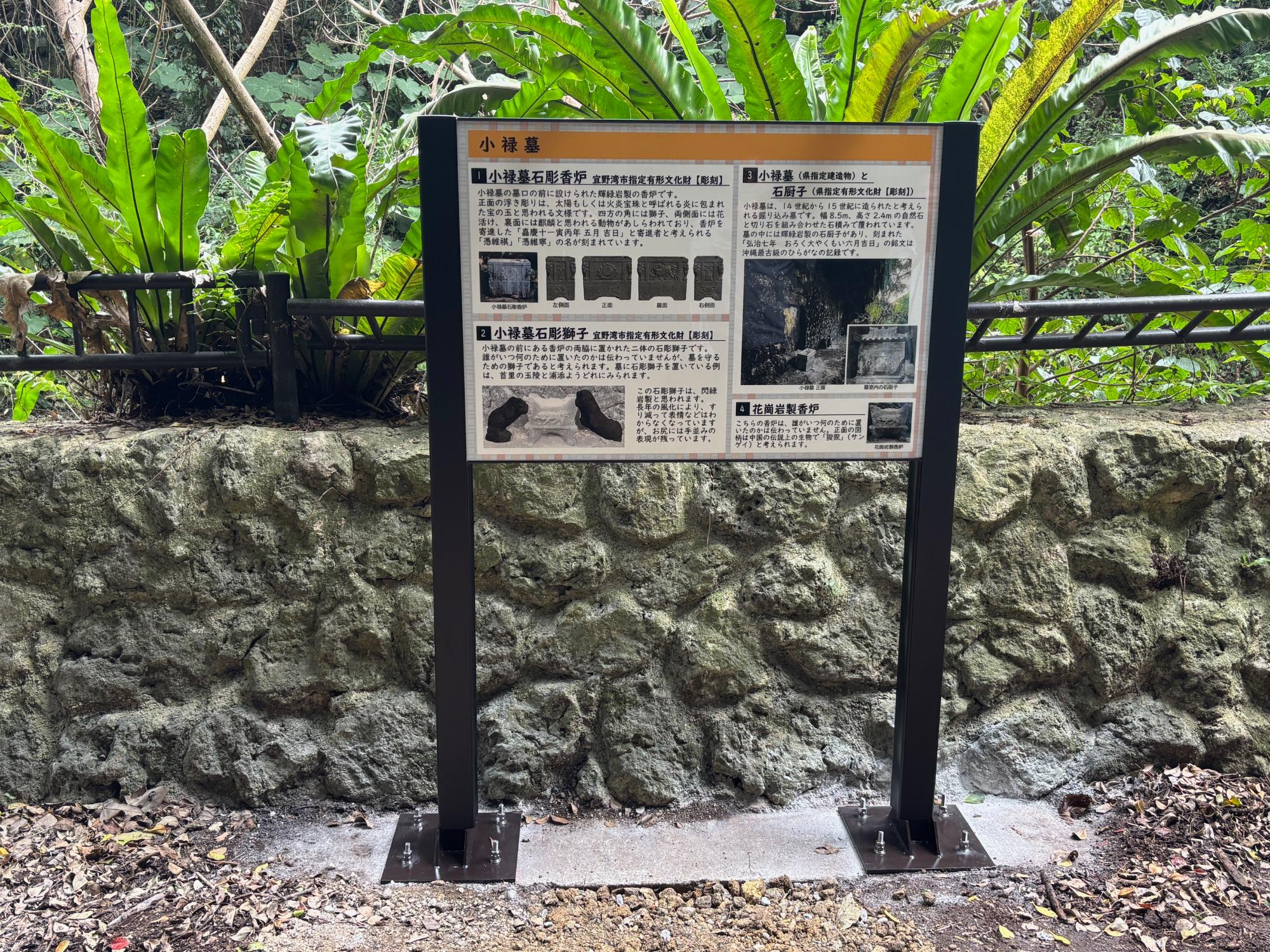 説明板には、小禄墓の特徴や香炉に関する説明文、その存在の貴重さなどを記しています🫡
