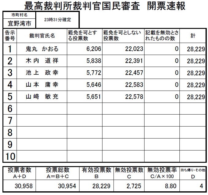 国民審査の開票速報については、最終結果の確定後公開します。 |