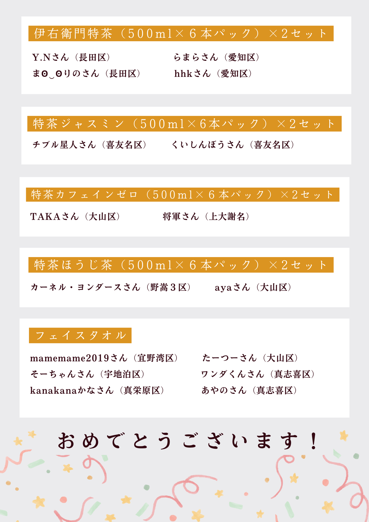 諸事情により景品の受け取りを辞退される方はお手数ですが宜野湾市保健相談センター(098-898-5597)までご連絡をお願いします。