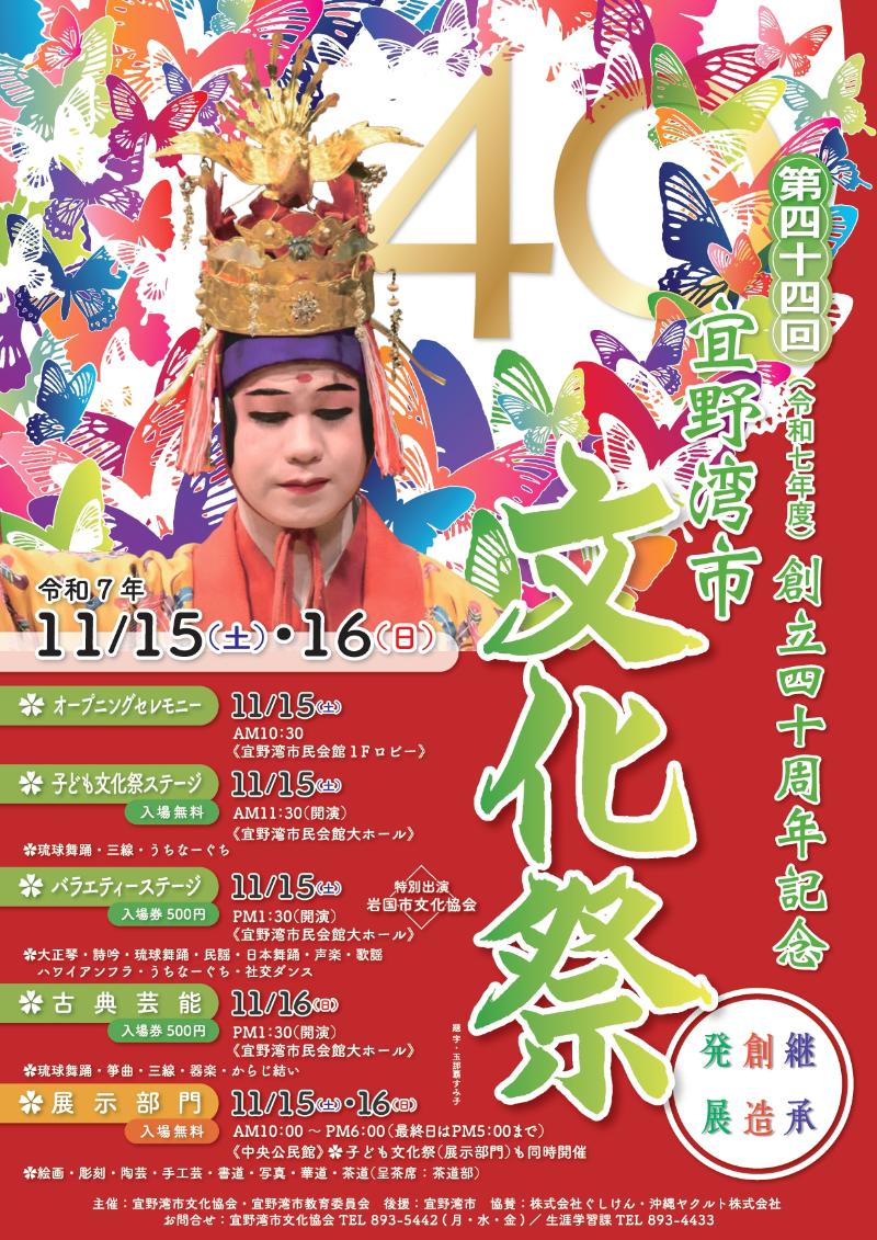 文化祭では「継承・創造・発展」をテーマに宜野湾市の芸能や文化活動の公演や発表をします。