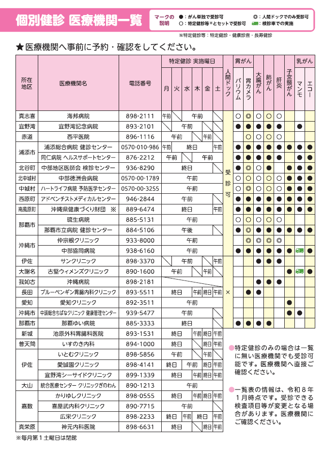 「令和8年度宜野湾市健診ガイドブック」6ページ目において、誤りがございましたことをお知らせいたします。